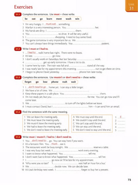 3 We mustn't leave the meeting early. C We can1t stay unti l the end.
