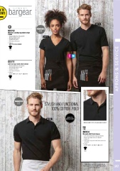 F 65% Polyester, 35% Cotton twill • Narrow high mitred v-neck