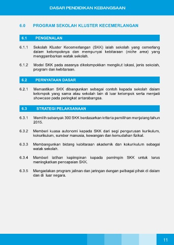 6.1.1 Sekolah Kluster Kecemerlangan (SKK) ialah sekolah yang cemerlang