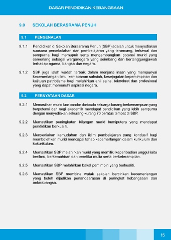9.1.1 Pendidikan di Sekolah Berasrama Penuh (SBP) adalah untuk menyediakan