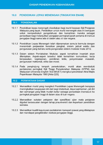 10.0 PENDIDIKAN LEPAS MENENGAH (TINGKATAN ENAM)