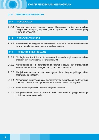 21.3.1 Meningkatkan taraf dan mutu kesenian di sekolah bagi memperkasakan