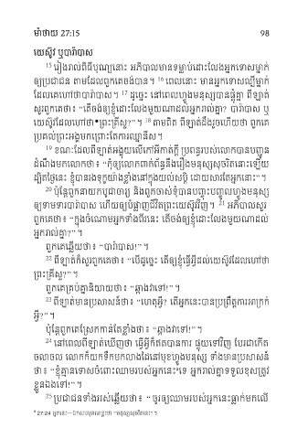 ពីឡាត់ ក សួរ ពួកអគ ថា ៖ “ អបដអច្រះ អត ឲ្យ ខំ អធ េវែ ដល អយសវ ថដល អៅថា