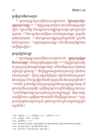 5:44 ឯកសារបរណខលារះបថនថាម “ឲ្យពរដល់េ្កថដលដាក់បណ្សាេ្ករល់គ្ អធវែើល្អដល់េ្កថដលស្អបេ្ករល់គ្”។