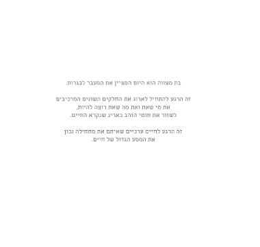 בת מצווה הוא היום המציין את המעבר לבגרות. זה הרגע להתחיל לארוג את החלקים השונים המרכיבים את מי שאת ואת מה שאת רוצה להיות, לשזור את חוטי הזהב באריג שנקרא החיים. זה הרגע לחיים ערכיים שאיתם את מתחילה נכון את המסע הגדול של חיים.