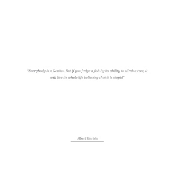 “Everybody is a Genius. But if you judge a fish by its ability to climb a tree, it will live its whole life believing that it is stupid“ Albert Einstein