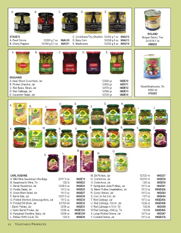 K. Hungarian Gherkins, Spicy, Jar 12/24 oz 08GE33H X. Large Pickled Onions, Jar 12/19 oz 08GE47