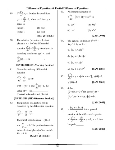 91. Given the ordinary differential (d) ( + ) [JAM 2005]