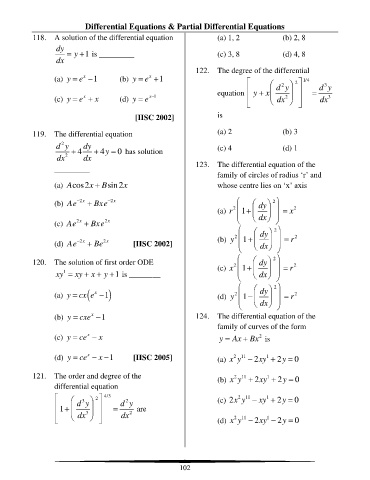 118. A solution of the differential equation (a) 1, 2 (b) 2, 8