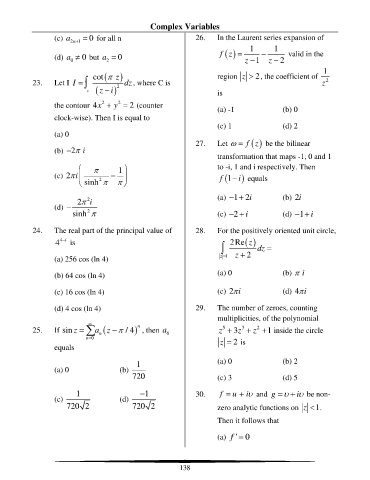 24. The real part of the principal value of 28. For the positively oriented unit circle,