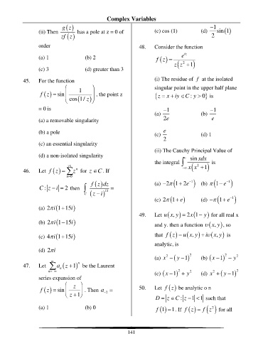 45. For the function (i) The residue of f at the isolated