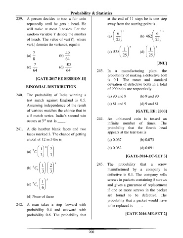 occurs at 3 test is ____. 244. An unbiassed coin is tossed an
