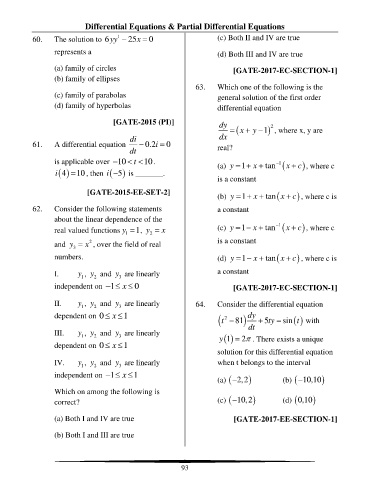 60. The solution to 6yy − 1 25x = 0 (c) Both II and IV are true