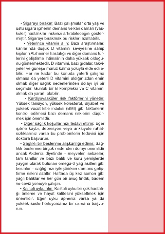 Demans; hafızayı, düşünmey� ve ğında, düşünme, davranış ve duy- • S�garayı bırakın: Bazı çalışmalar orta yaş ve