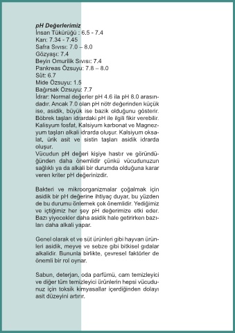 pH Değerler�m�z s�n�n d�rençl� olmasını sağlar.