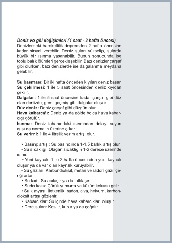 Ölü balık: Balıklar nedens�z b�r şek�lde önces� pörsür. • Su gazları: Karbond�oks�t, metan ve radon gazı �çe-