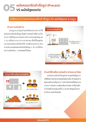 เปรียบระหวางผนังคอนกรีตสำเร็จรูป กับ ผนังอิฐแดง ฉาบปูน