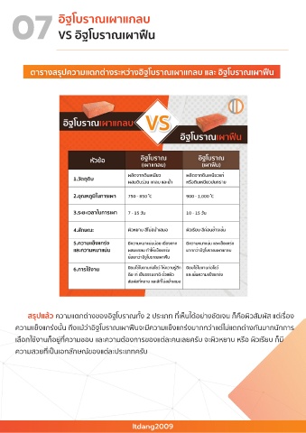ตารางสรุปความแตกตางระหวางอิฐโบราณเผาแกลบ และ อิฐโบราณเผาฟน