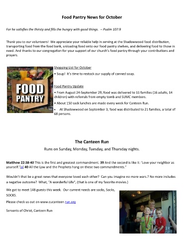 need. And thanks to our congregation for your support of our church’s food pantry through your contributions and