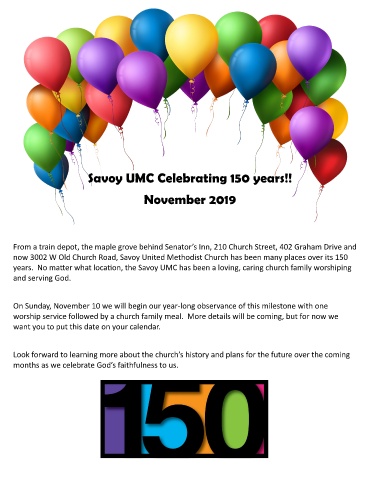years. No matter what location, the Savoy UMC has been a loving, caring church family worshiping