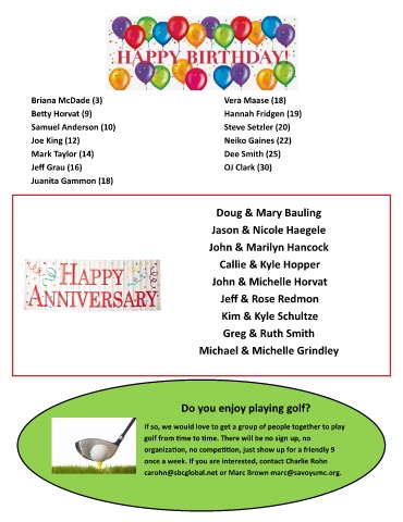 carohn@sbcglobal.net or Marc Brown marc@savoyumc.org.