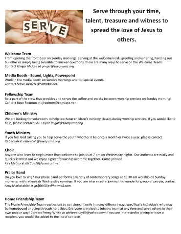 bulletins or simply being available to answer questions, there are many ways to serve on the Welcome Team!