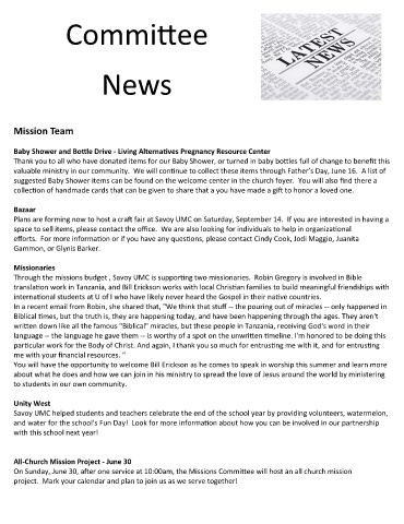Through the missions budget , Savoy UMC is supporting two missionaries. Robin Gregory is involved in Bible