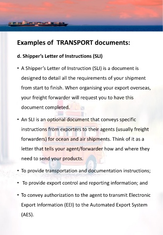 • A Shipper’s Letter of Instruction (SLI) is a document is