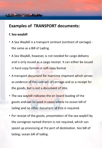 • A Sea Waybill is a transport contract (contract of carriage) -
