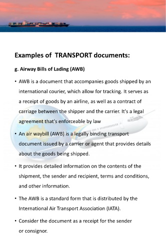 g. Airway Bills of Lading (AWB)