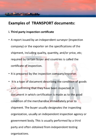 • It is a type of document describing the condition of goods