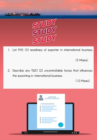 1. List FIVE (5) readiness of exporter in international business (5 Marks) 2. Describe any TWO (2) uncontrollable forces that influences the exporting in international business (10 Marks)