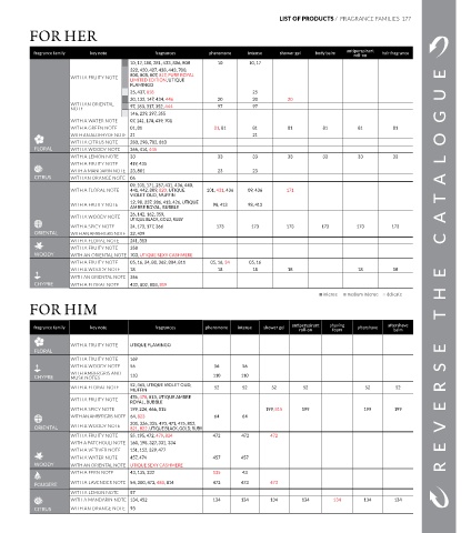 176 | LIST OF PRODUCTS / FRAGRANCES LIST OF PRODUCTS / FRAGRANCE FAMILIES 177