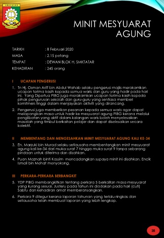 II MEMBENTANG DAN MENGESAHKAN MINIT MESYUARAT AGUNG KALI KE-34