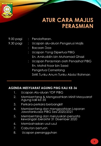 AGENDA MESYUARAT AGUNG PIBG KALI KE-36
