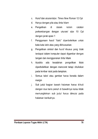 c. Huruf dan ukuran/size: Times New Roman 12 Cpi