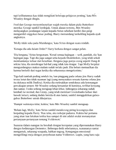 'Molly tidak suka pada Mundungus,' kata Sirius dengan suara rendah.