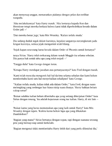 'Dan mereka benar juga,' kata Mrs Weasley. 'Kalian terlalu muda.'
