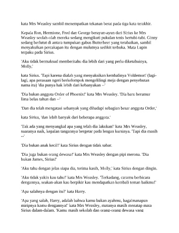 'Dia juga bukan orang dewasa!' kata Mrs Weasley dengan pipi merona. 'Dia