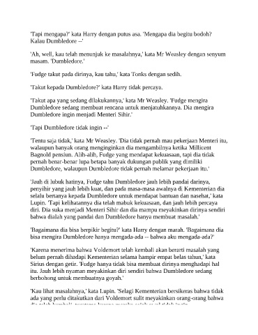 'Fudge takut pada dirinya, kau tahu,' kata Tonks dengan sedih.