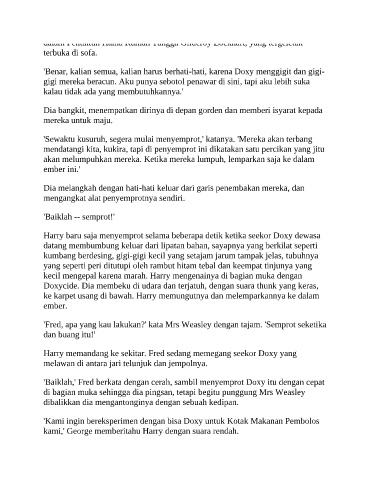 'Baiklah,' Fred berkata dengan cerah, sambil menyemprot Doxy itu dengan cepat