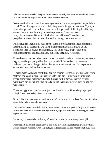 kuhilangkan pasti akan kulakukan. Sekarang pergilah, Kreacher.'