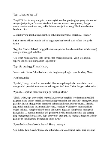 'Yeah,' kata Sirius. 'Idiot bodoh ... dia bergabung dengan para Pelahap Maut.'