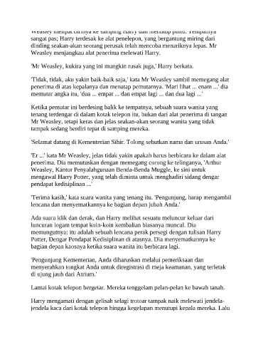 Weasley menjangkau alat penerima melewati Harry.