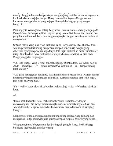 'Ah,' kata Fudge, yang terlihat sangat bingung. 'Dumbledore. Ya. Kalau begitu,