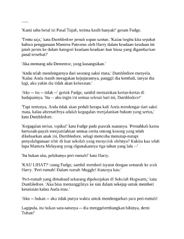 'Tentu saja,' kata Dumbledore penuh sopan santun. 'Kalau begitu kita sepakat