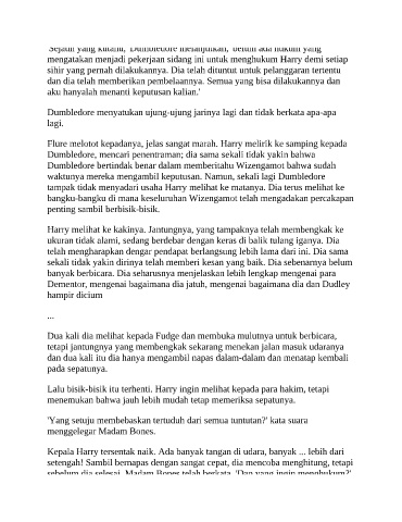 'Sejauh yang kutahu,' Dumbledore melanjutkan, 'belum ada hukum yang