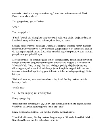 Harry menarik tongkatnya. Dia melihat Dudley mengerlingnya.