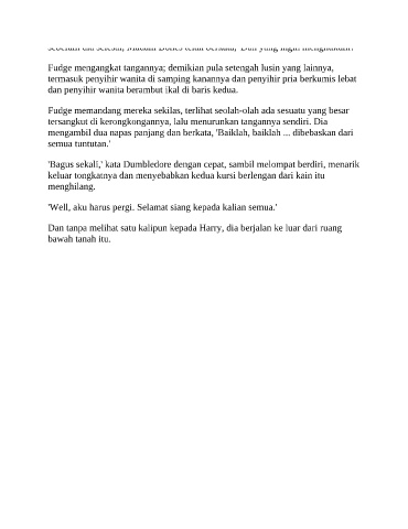 Fudge memandang mereka sekilas, terlihat seolah-olah ada sesuatu yang besar