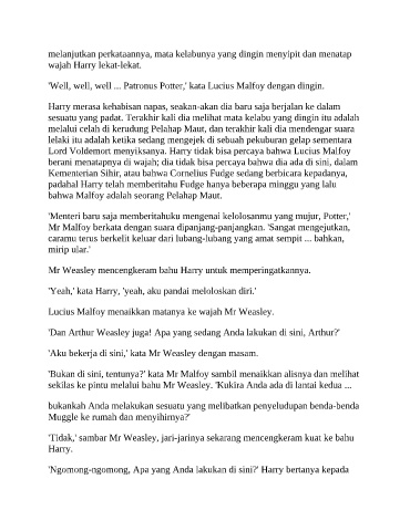 'Well, well, well ... Patronus Potter,' kata Lucius Malfoy dengan dingin.